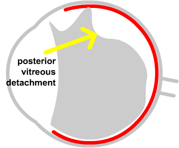 The vitreous detachment may tear the retina. If a hole or tear develops in the retina, then there is an increased risk of there being a retinal detachment. A detached retina can cause loss of vision, and requires a surgical operation to put the retina back in the right place. Thus, it is very important that you have your eye examined urgently on the onset of symptoms. There are other less common reasons for floaters - eg. bleeding into the gel in the back of the eye from a blood vessel (usually in diabetic patients).